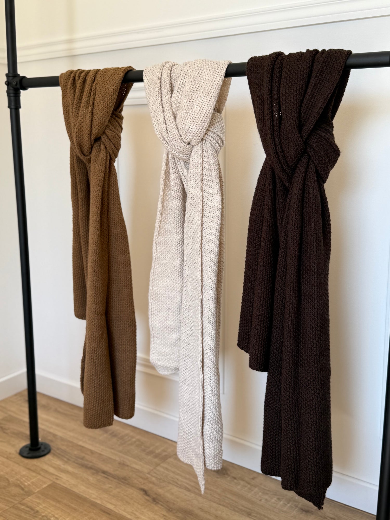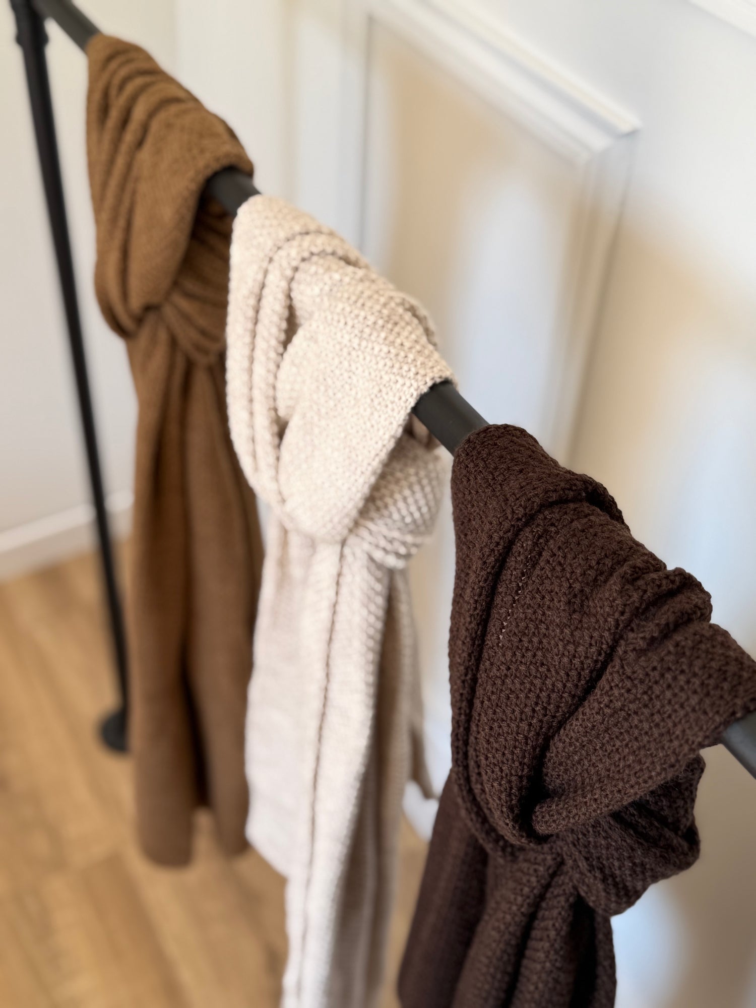 Enveloppez-vous de confort avec notre écharpe douce en maille, pensée pour allier chaleur, style et douceur.
