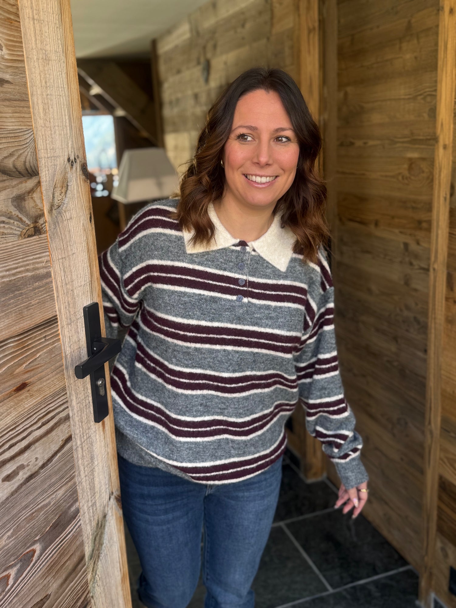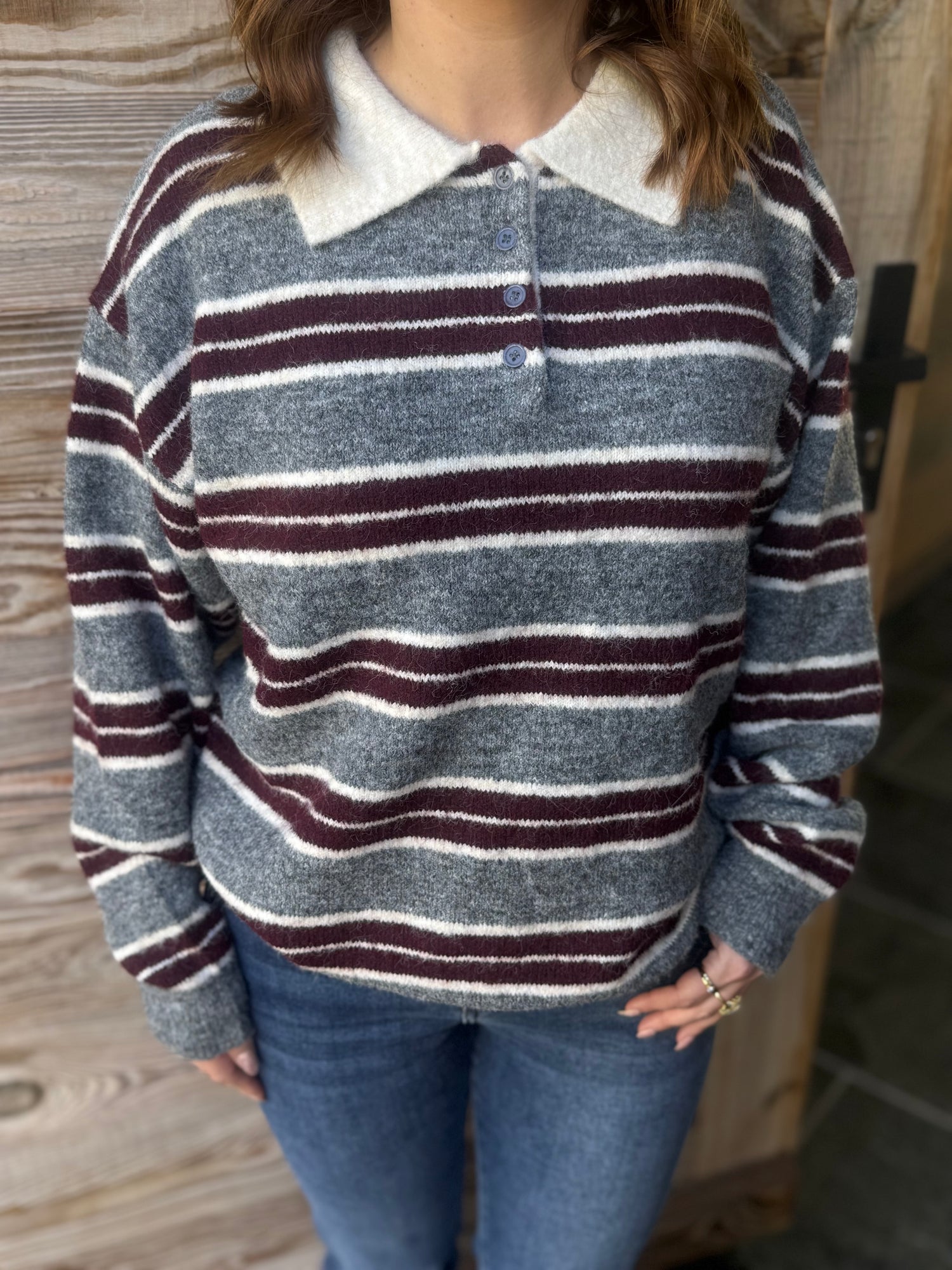 Pull à l’allure rétro chic, doté d’un col polo boutonné qui apporte une touche élégante et structurée. Sa maille douce et chaude assure un confort optimal, idéal pour la mi-saison comme pour l’hiver. Les rayures contrastées donnent du caractère à la silhouette tout en restant faciles à associer.