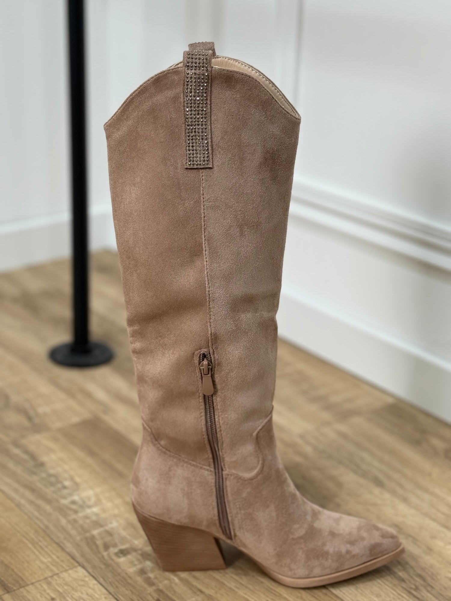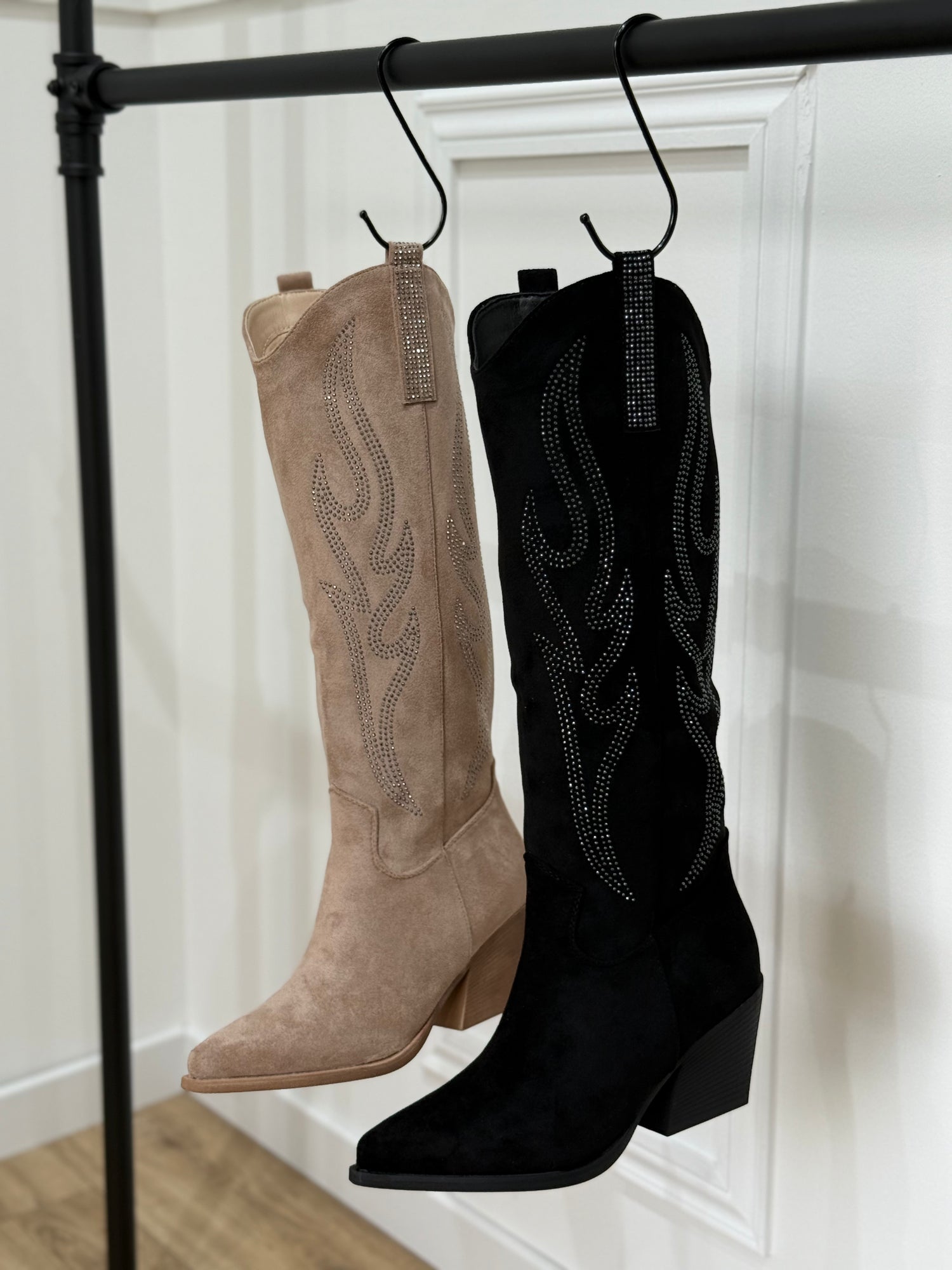 Santiags effet daim avec flamme en strass ✨