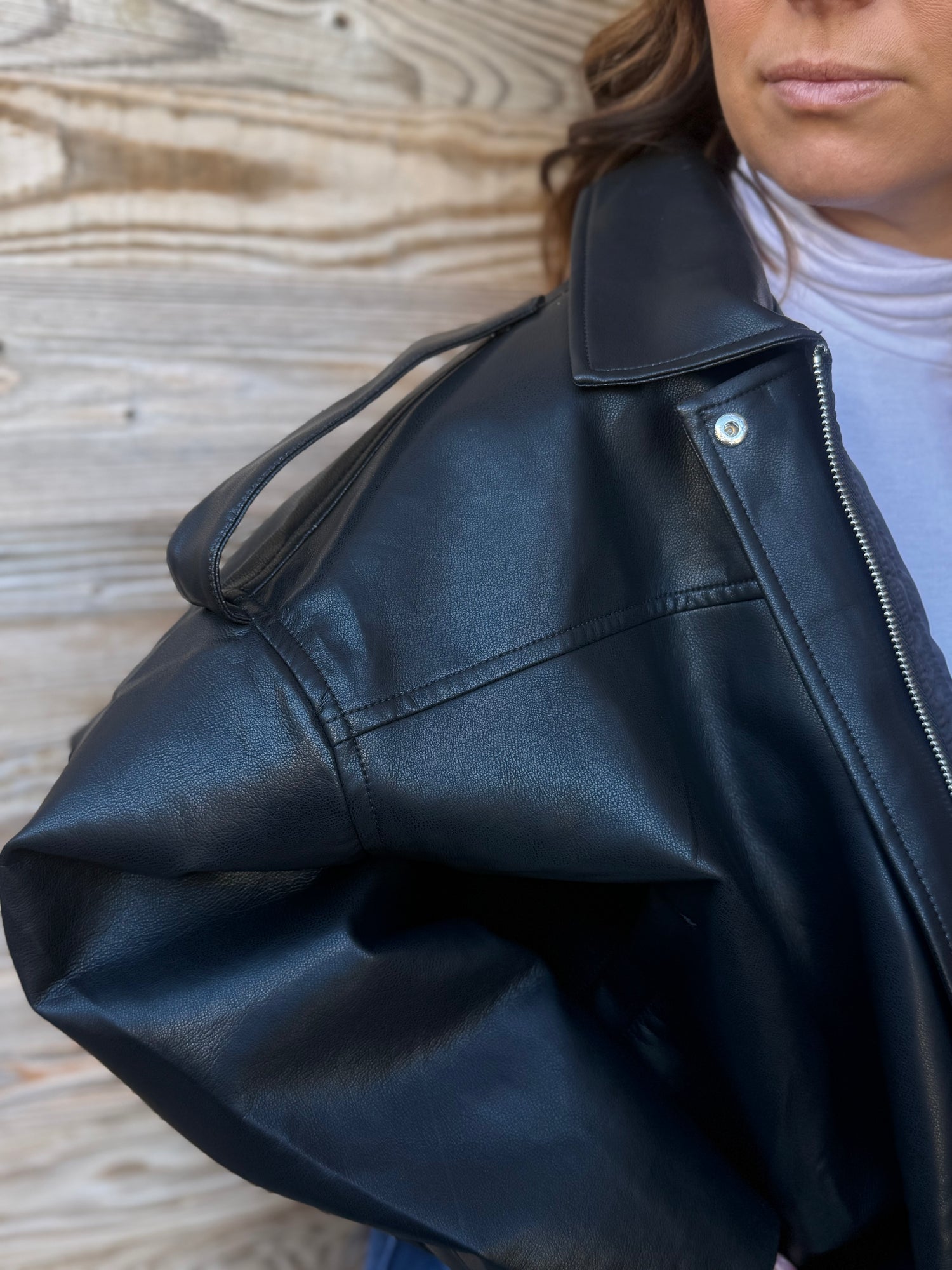 Cette veste en simili cuir allie style et modernité avec sa coupe oversize et ses détails soignés. Parfaite pour un look décontracté ou plus habillé, elle offre une touche de sophistication grâce à son design épuré et sa fermeture zippée. Avec ses manches volumineuses et son fini lisse, elle devient un incontournable de votre garde-robe pour un look tendance et affirmé.
